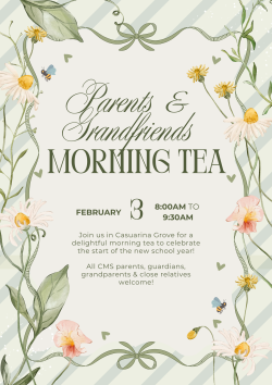 Join us in the Cycle 1 playground from 8:00AM to 9:30AM on Tuesday 3 February for a delightful morning underneath the casuarina trees while you enjoy some delicious breakfast treats! All parents, guardians, grandparents & close relatives are welcome to join (and our students too, of course!)